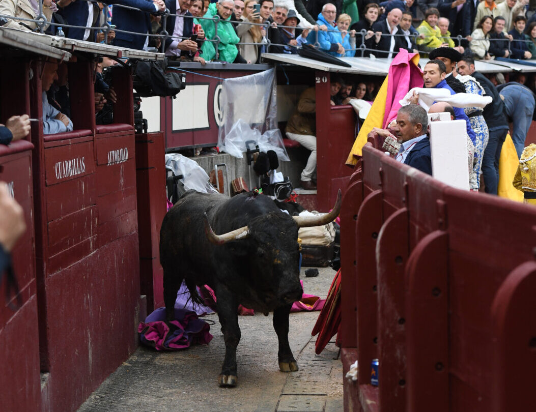 El sexto toro de Adolfo Martín, que fue devuelto, saltó durante su lidia al callejón de Las Ventas, sembrando el pánico entre cuadrillas y trabajadores. Todo quedó en un susto.