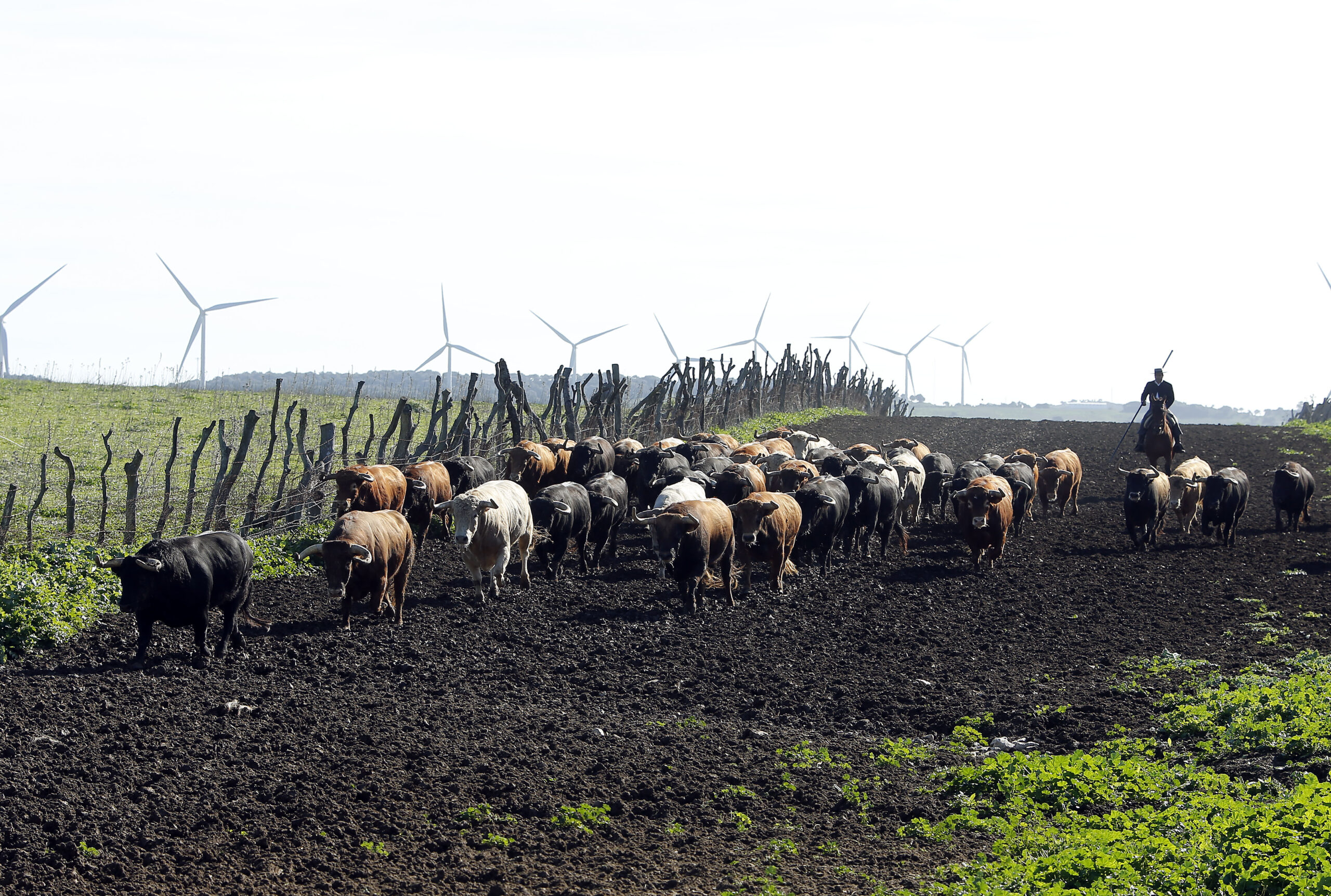 Álvaro vive con su familia en primera línea del trabajo, al pie de su pasión, en el cortijo de Gallarín, una edificación decimonónica restaurada con el máximo respeto arquitectónico. Situada en una vaguada, bien protegido de los elementos de la madre naturaleza que en la zona soplan con incómoda frecuencia y envuelta entre acebuches, la mansión adquiere un aspecto paradisiaco. Si los mayores la levantaron ahí sus motivos tendrían, coincidimos todos. Poco más allá, en la loma más elevada de Gallarín, en el llamado cerro de Jerez, el espectáculo deslumbra. Situado en la misma cota que Vejer, de frente se perfila perfectamente el horizonte marino del Atlántico. En línea recta no hay más de tres kilómetros a la playa virgen de El Palmar, arena fina, tentación y paz además de algo inaudito, ausencia de construcciones. Milagro, alguien frenó la especulación urbanística. De por medio los acebuches, los palmitos y otras variedades botánicas propias de la zona, flora virgen y respetada que llega a la misma arena. Poco más allá, al sur, se adivina África, los días claros me aseguran que se ve con nitidez y al otro lado de la panorámica el Cádiz urbano y ahora podemita, siempre bello y ocurrente y la señorial Jerez resistiendo la decadencia.