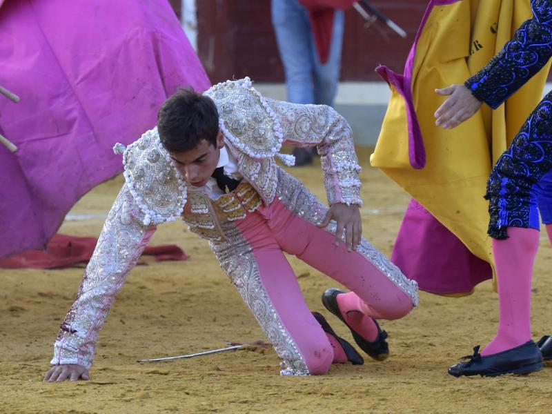 Alejandro Marcos protagonizó el otro susto del festejo de este lunes en Villaseca de la Sagra. El novillero charro fue volteado aparatosamente por el quinto utrero del encierro de Flor de Jara pero, afortunadamente, el percance no pasó del susto y el torero no tuvo que ser atendido por los médicos.