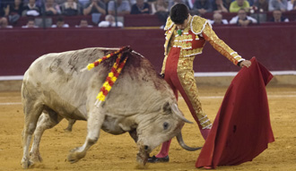 José María Manzanares cortó una oreja del segundo, un toro bajo y bien hecho al que recibió con templados lances a la verónica. El de cuvillo, un manso encastado, llegó con movilidad al último tercio y eso lo aprovechó el alicantino para cuajar una notable faena llena de gusto, suavidad y empaque. Faena de menos a más que alcanzó su máximo en una tanda al natural extraordinaria, con largura y relajo. Mató de una gran estocada al volapié en los medios.