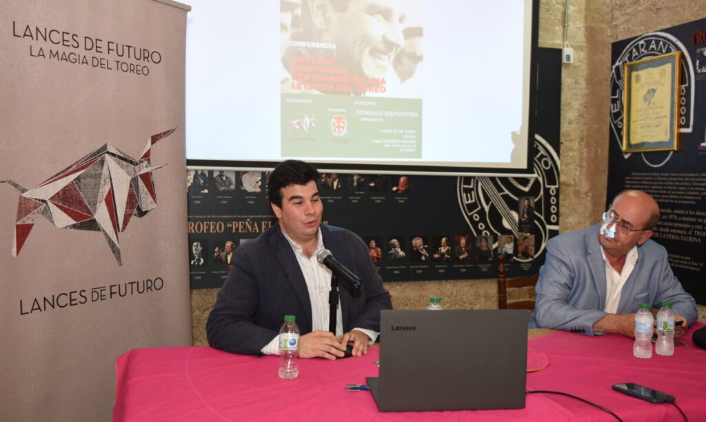 Los Aljibes Árabes de Almería acogieron este lunes una interesante conferencia sobre la figura de Antonio Bienvenida en el centenario de su nacimiento. Gonzalo I. Bienvenida, nieto de Antonio Bienvenida, fue el encargado de glosar al maestro en un acto moderado por nuestro compañero Juan Aguilera y donde asistieron el empresario José María Garzón junto al concejal de Cultura, Diego Cruz, además de otros dirigentes políticos como Rafael Hernando y Luis Rogelio Rodríguez, senadores del PP por Almería; o el diputado provincial de Cultura, Manuel Guzmán.