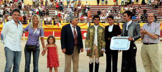 Al finalizar el festejo el alcalde de la localidad, Roland Chassain y la empresaria María Sara, le entregaron a Andy Cartagena el trofeo Centauro de Oro.