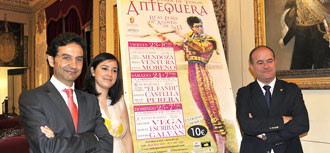 El empresario José Luis Lara ha dado a conocer los carteles de la próxima Feria de Agosto de Antequera, en un acto que ha contado con el alcalde de la ciudad, Manolo Barón, y la teniente de alcalde delegada de Cultura, Festejos y Comunicación, Ana Cebrián.