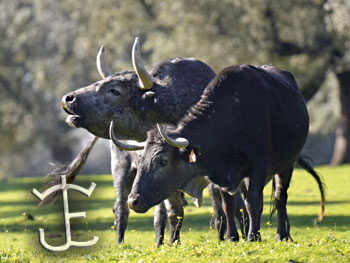 Dos, tres, cuatro corridas de plazas de primera, más de treinta y cinco toros, muchos de ellos se podrían lidiar mañana mismo. Todos en un mismo cercado. Ausencia total de colorados, incluidas cualquiera de sus variantes cromáticas y dudo que haya alguno absolutamente negro. Estamos en el mundo de los cárdenos, huele a bravura, a dureza, se siente el respeto y hasta el miedo, se palpa la dificultad,“la nobleza no es bravura, lo bravo no es noble”, nos dirá poco después su criador y contemplando aquella maravilla a uno, si las tuviese, se le irían las ganas de ser torero. Grandes arboladuras como si apuntasen a las crestas de la Sierra de Gredos, especie de andanada natural que preside el gran escenario, también los hay de armamento más equilibrado, armónico se dice ahora, todo depende de si andan más o menos emparentados con los albaserrada o los santacoloma, las dos líneas dinásticas de la casa, que aun siendo parientes no son la misma cosa.