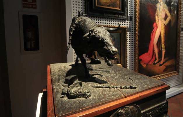 La estocada de la tarde recoge el momento agónico de un toro de Miura de nombre Barbero, al que el gran Rafael González “Machaquito” recetó un volapié rotundo en la plaza de Madrid. El cornúpeta aparece tambaleante y resistente en la agonía de la muerte con un girón de tela de la camisa del diestro en la punta del pitón derecho como demostración de lo ajustado que había sido el lance, en realidad de lo cerca que había estado de la muerte el diestro cordobés. El periodista José Luis de Córdoba habló cincuenta años después con el propio Machaquito en su casa de Córdoba sobre aquel suceso. Recuerda el maestro que el miura, de afilada cornamenta, era cárdeno, bragado y chorreado de capa: “La faena fue corta, creo que dos naturales, dos de pecho, todos con la izquierda y el volapié”, reseñó el califa cordobés, que insiste en el girón de la pechera de su camisa que se llevó el toro en sus astas para inspirar a Benlliure, que estaba tomando apuntes durante la corrida, aunque en opinión de Machaquito lo que finalmente impulsó al escultor a realizar la magnífica obra fue una carta de Don Modesto, crítico de El Liberal, animándole a inmortalizar en bronce aquel brutal momento.