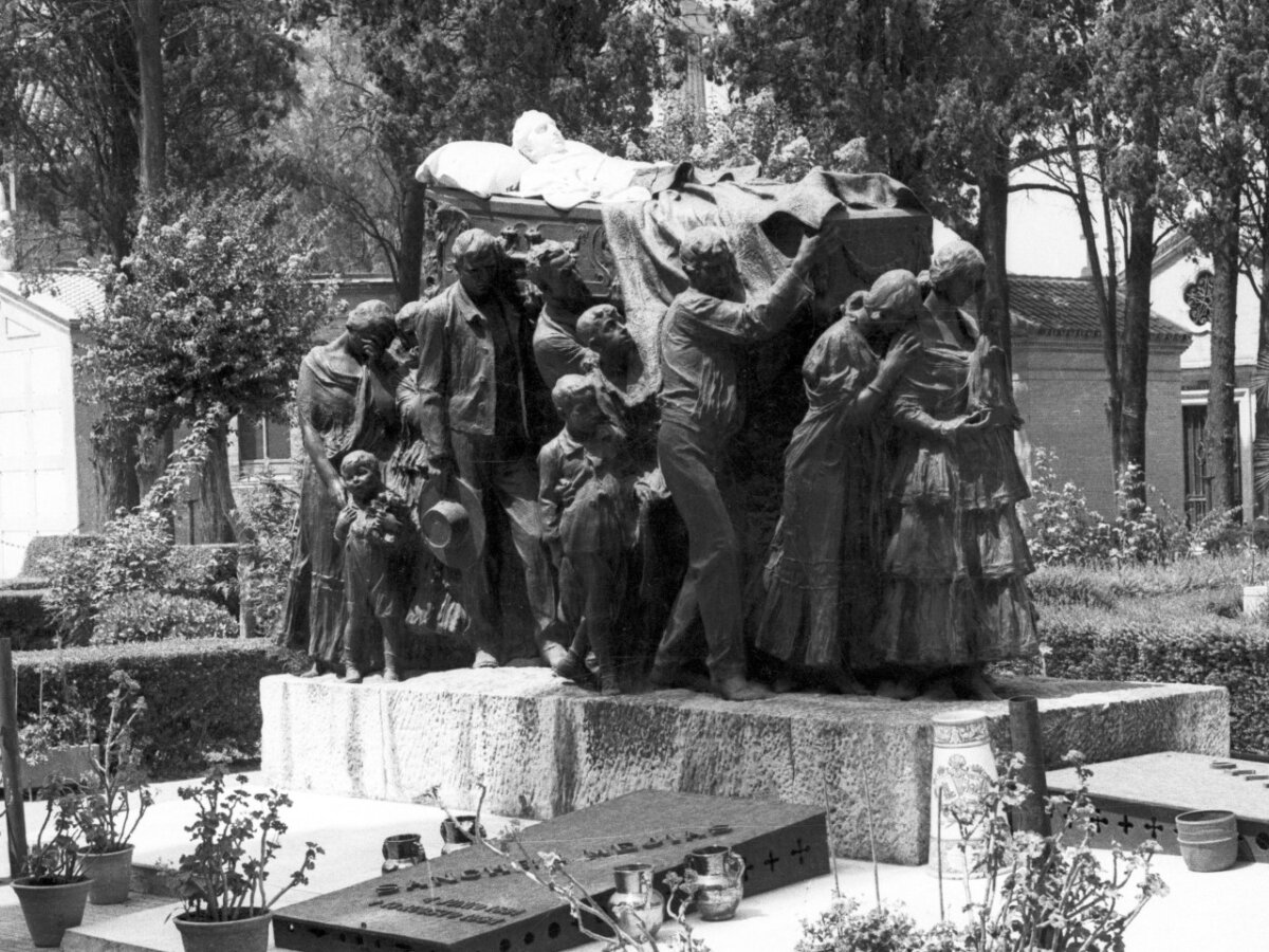 Estos días adquiere mayor relevancia si cabe el mausoleo de Joselito, obra del que muchos consideran como el mejor intérprete del sentimiento taurino. Lo encargó el legendario e ilustrado Ignacio Sánchez Mejías, cuñado del finado con el que alternaba el día fatídico en el que el toro Bailaor acabó con la vida del que se consideraba el rey de los toreros. Fue tal la expectación que levantó el encargo que, una vez finalizada, el propio rey, Alfonso XIII, acudió al taller del escultor en Madrid a contemplarla. La obra, que fue expuesta en el Palacio de Bellas Artes de Sevilla antes de instalarse definitivamente en San Fernando, está hecha en bronce y mármol de Carrara, material que se reservó para el rostro del torero yacente y el capote que sirve de sudario con lo que se consigue dotarle de una serenidad impactante que contrasta con la dramática belleza del resto de la comitiva que porta el féretro, de la que forman parte personajes reconocidos y gitanos anónimos que representan al entorno social del torero que pertenecía a la etnia calé. Entre los primeros y en primer plano figura el ganadero Eduardo Miura, el de las patillas, que había muerto tres años antes pero con el que se quiso tener esa licencia que muchos califican de poética; estaba, faltaría más, Sánchez Mejías, torero, mecenas literario, escritor y hombre de legendarias iniciativas que pasó su vida persiguiendo el espíritu de su admirado Joselito, que aparece en el cortejo clamando al cielo; mientras abre la comitiva María la de las Cartas, esposa del cantaor Curro el de Jeroma, que porta una imagen de la virgen de la Macarena a la que vistieron de luto por vez primera con motivo de la muerte del torero.