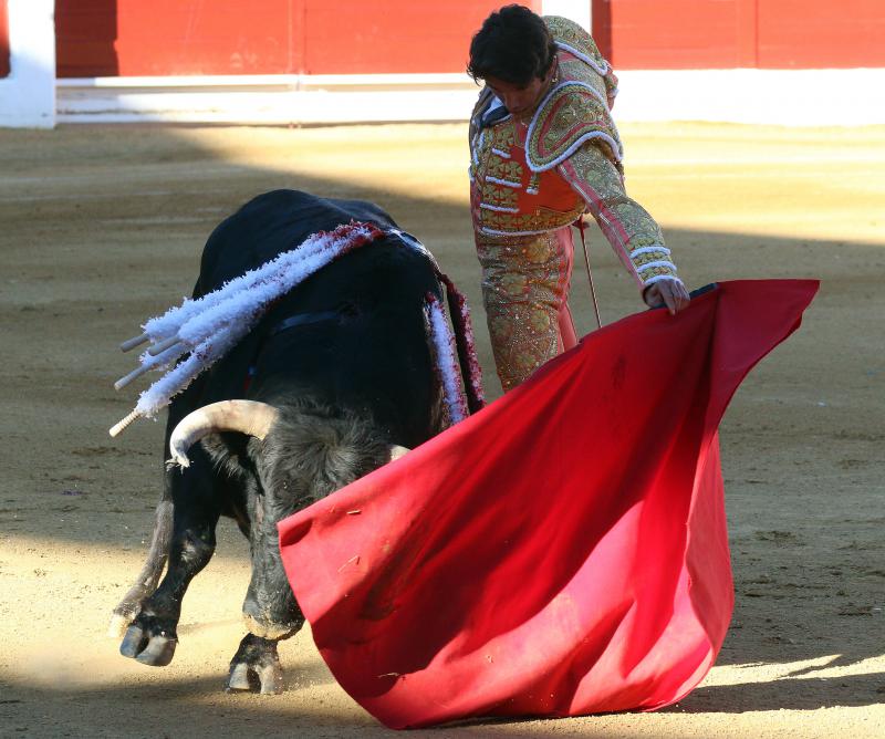 Sebastián Castella consiguió la oreja que le daba el derecho a abrir la puerta grande en el quinto de la tarde, un buen animal de La Palmosilla. El francés estuvo lucido con capote. Posteriormente cuajó faena larga y abundante. Estuvo a gusto y asentado.
