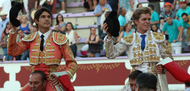Borja Jiménez fue el gran triunfador de la tarde. El sevillano estuvo a gran altura, entregado y toreando con buena expresión. Cortó cuatro orejas y salió a hombros junto a Sebastián Castella, que paseó una de cada uno de sus toros.