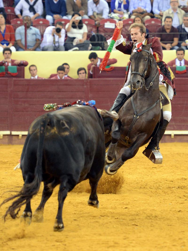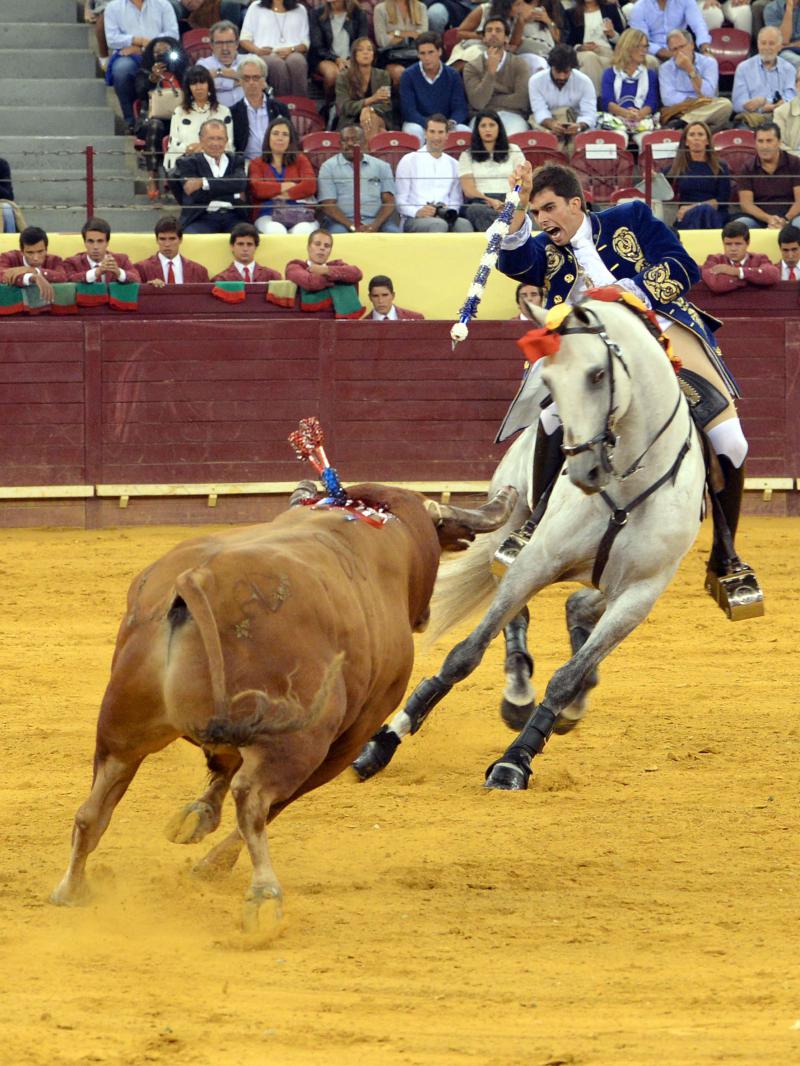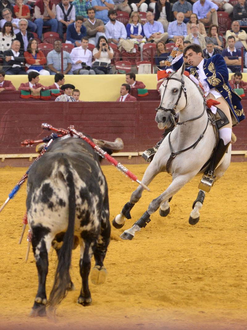 Lisboa (Portugal), jueves 3 de septiembre de 2015. Toros de Antonio Charrúa (1º y 4º), nobles pero sin chispa; Pinto Barreiros (2º, cumplió y 5º, bravo); Murteira Grave (3º, manso y 6º, codicioso). Joao Moura hijo, vuelta, vuelta y vuelta; Joao Telles hijo, vuelta, vuelta y vuelta. Entrada: Casi tres cuartos.