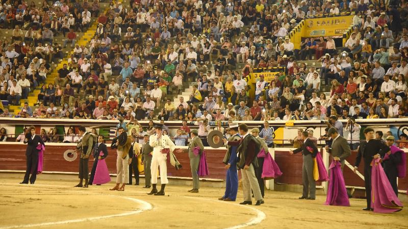 Martes 31. Corrida concurso de ganaderías. Toros de Fuentelapeña, Orbes, Paispamba, Salento, Ernesto Gutiérrez y Guachicono para Paco Perlaza, Román y Luis David.