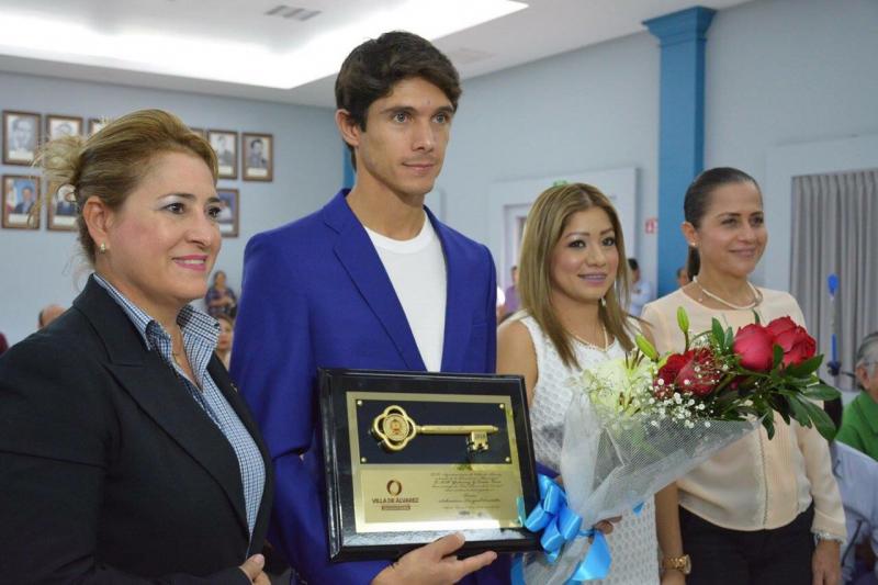 Sebastián Castella recibió este lunes "Las llaves de la ciudad" de Villa de Álvarez (México) de manos de la presidenta municipal, Yulenny Cortés León. Es la primera vez que el municipio rinde homenaje a un torero como "visitante distinguido" de la ciudad.