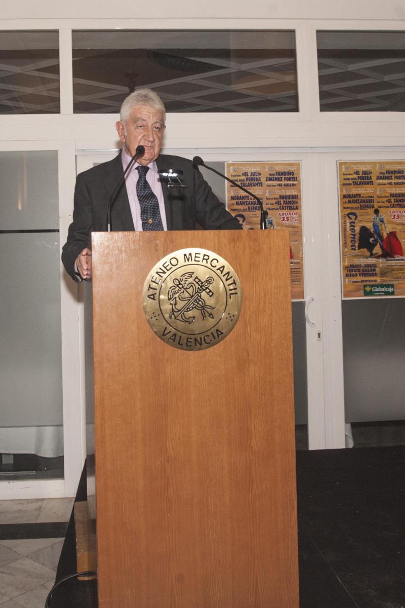 Finalmente, durante la celebración de una cena en el Restaurante Ateneo, recibió el premio y la ovación y el cariño del centenar de comensales que quisieron acompañar al matador. En palabras de Carmen de Rosa, Presidenta del Ateneo Mercantil de Valencia, “Castella es un gran ejemplo de torería, talento y personalidad, y reconocido internacionalmente como uno de los mejores en su profesión en todo el mundo”. De él, podemos destacar “su valor incuestionable, una técnica depurada, siendo en el presente año uno de los más destacados en cuanto a número de festejos y trofeos conseguidos”, concluyó Juan Coca, responsable de la Tertulia Taurina.