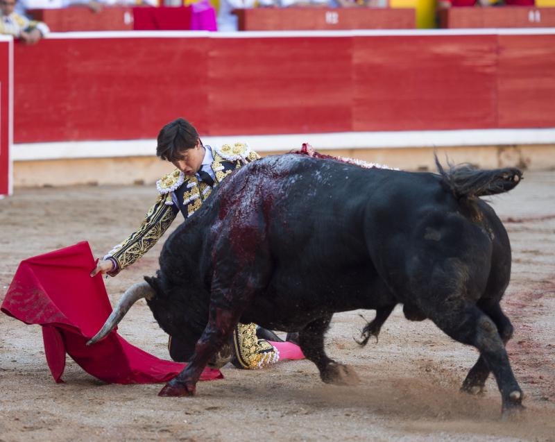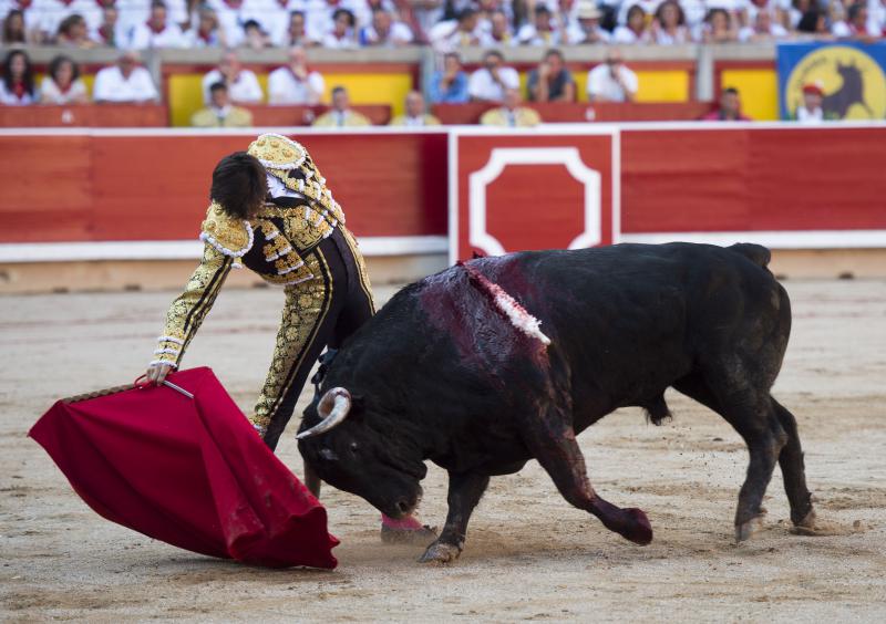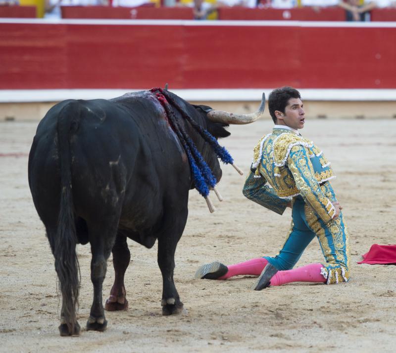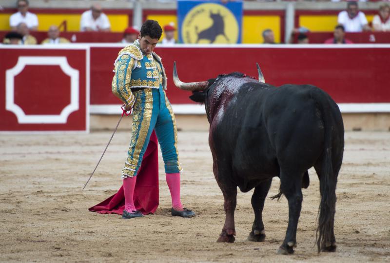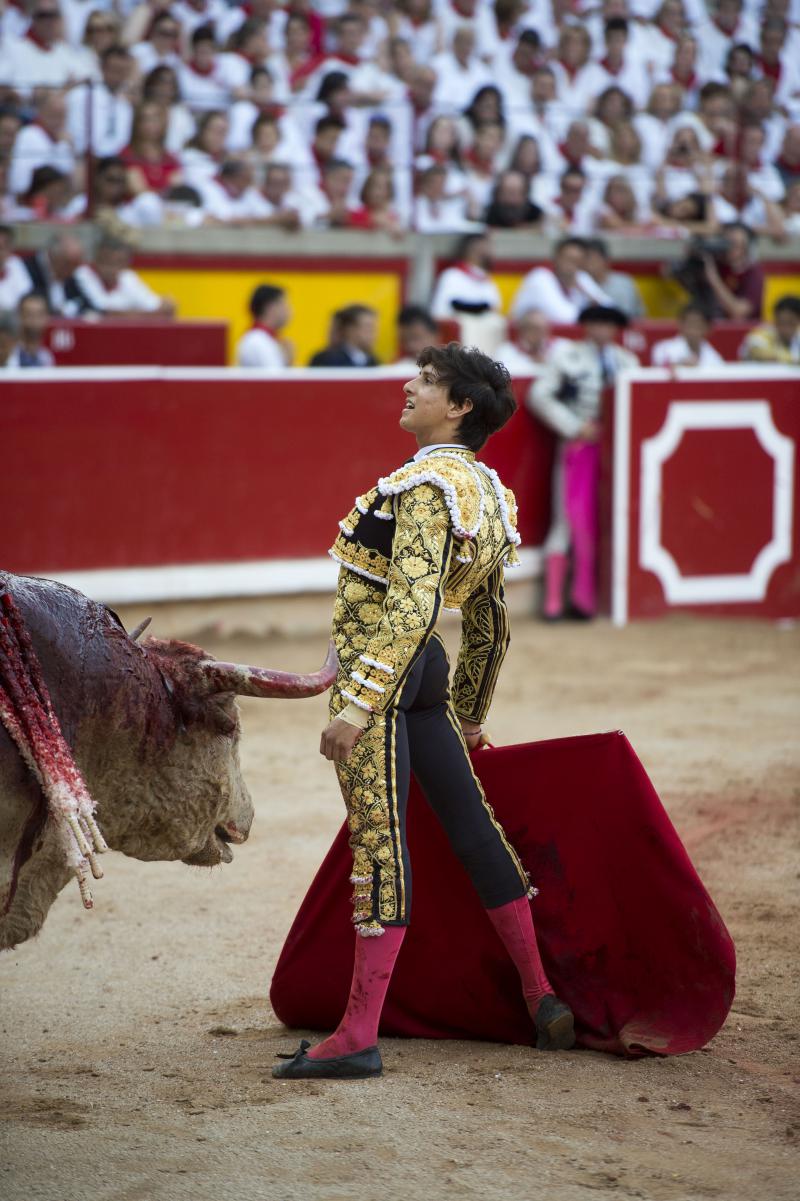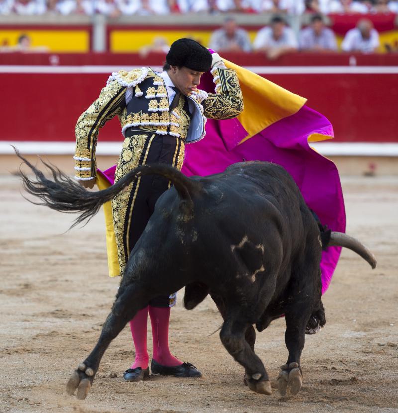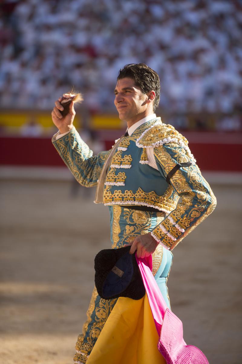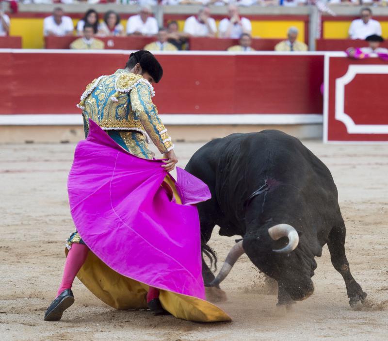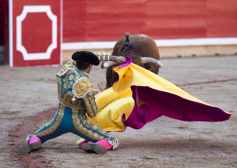 Inició con buenos ayudados por alto su faena de muleta al quinto, acompañando la embestida del animal, que mostró nobleza y buena condición. Le ganó bien el paso Cayetano toreando sobre la diestra, quedándose colocado para ligar los pases. No se dejó tocar el engaño tampoco al natural, acompañando con ritmo y empaque las acometidas del de Jandilla. Por ahí llegaron los mejores pasajes. Revistió todo con torería y majestad y, en un alarde de valor, hincó las rodillas al final para instrumentar varios naturales. Un desplante dando la espalda a los pitones metió de lleno a las peñas. Dejó media estocada tendida aunque en buen sitio y precisó de dos golpes de descabello. El público pidió la oreja que le abrió la puerta grande.