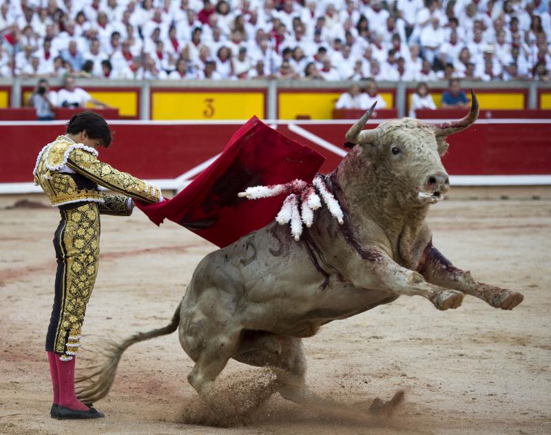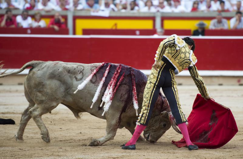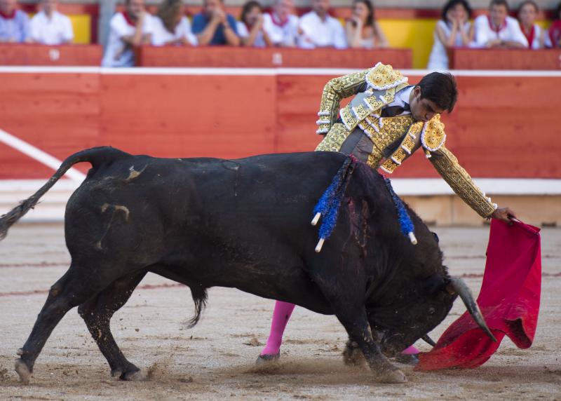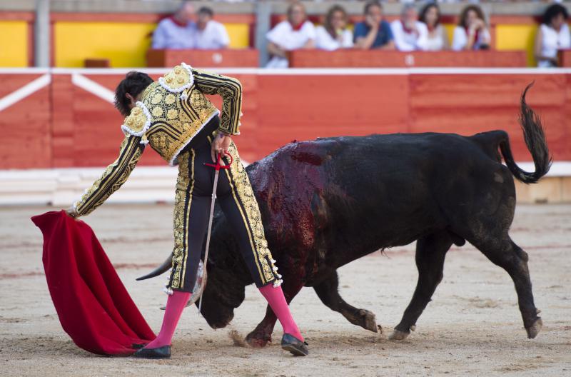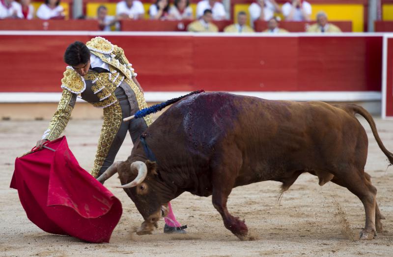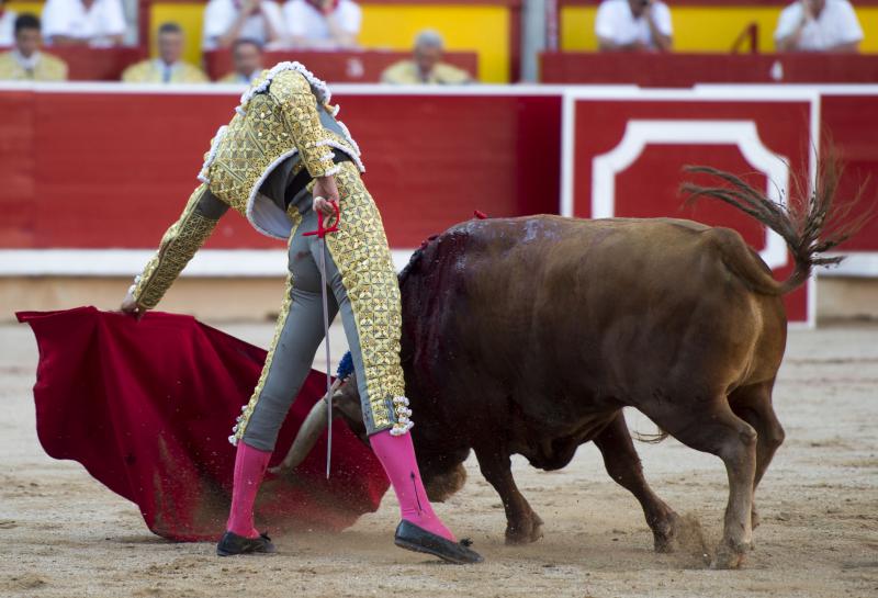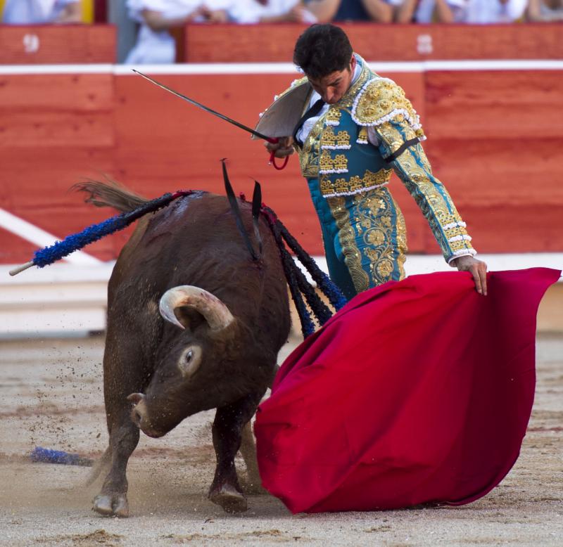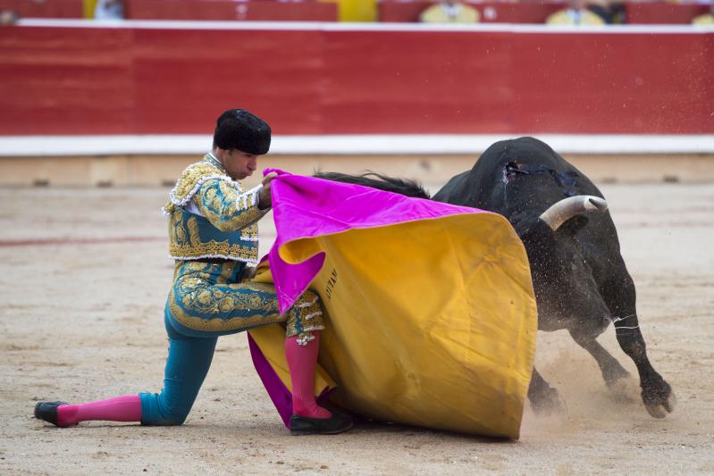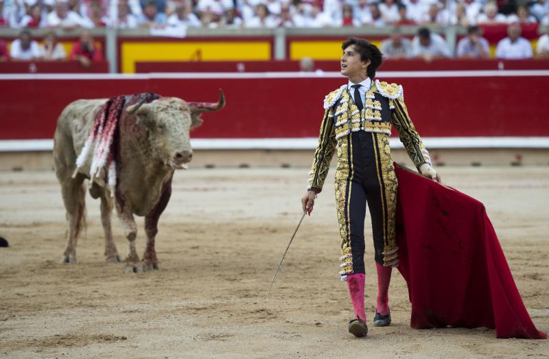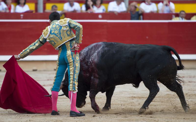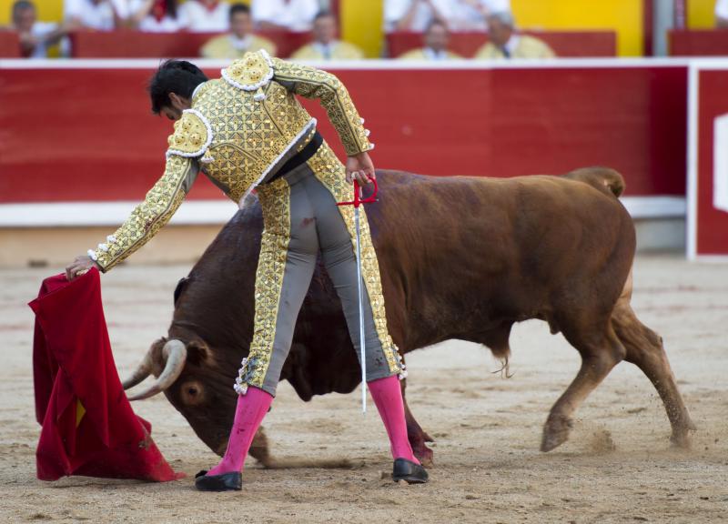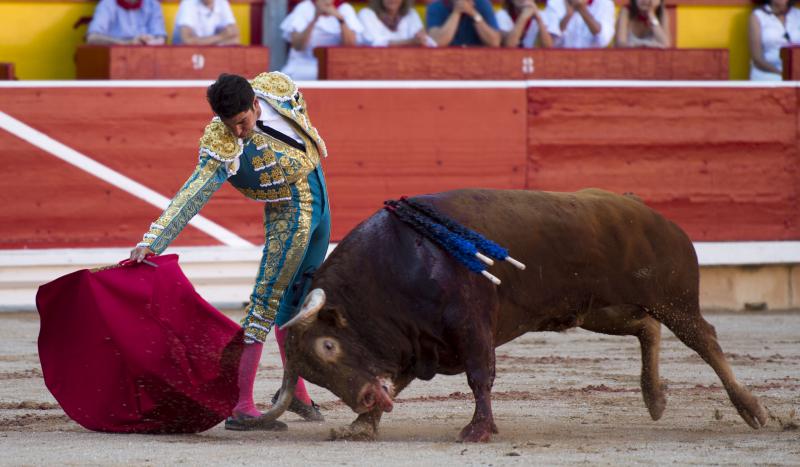 Inició con buenos ayudados por alto su faena de muleta al quinto, acompañando la embestida del animal, que mostró nobleza y buena condición. Le ganó bien el paso Cayetano toreando sobre la diestra, quedándose colocado para ligar los pases. No se dejó tocar el engaño tampoco al natural, acompañando con ritmo y empaque las acometidas del de Jandilla. Por ahí llegaron los mejores pasajes. Revistió todo con torería y majestad y, en un alarde de valor, hincó las rodillas al final para instrumentar varios naturales. Un desplante dando la espalda a los pitones metió de lleno a las peñas. Dejó media estocada tendida aunque en buen sitio y precisó de dos golpes de descabello. El público pidió la oreja que le abrió la puerta grande.