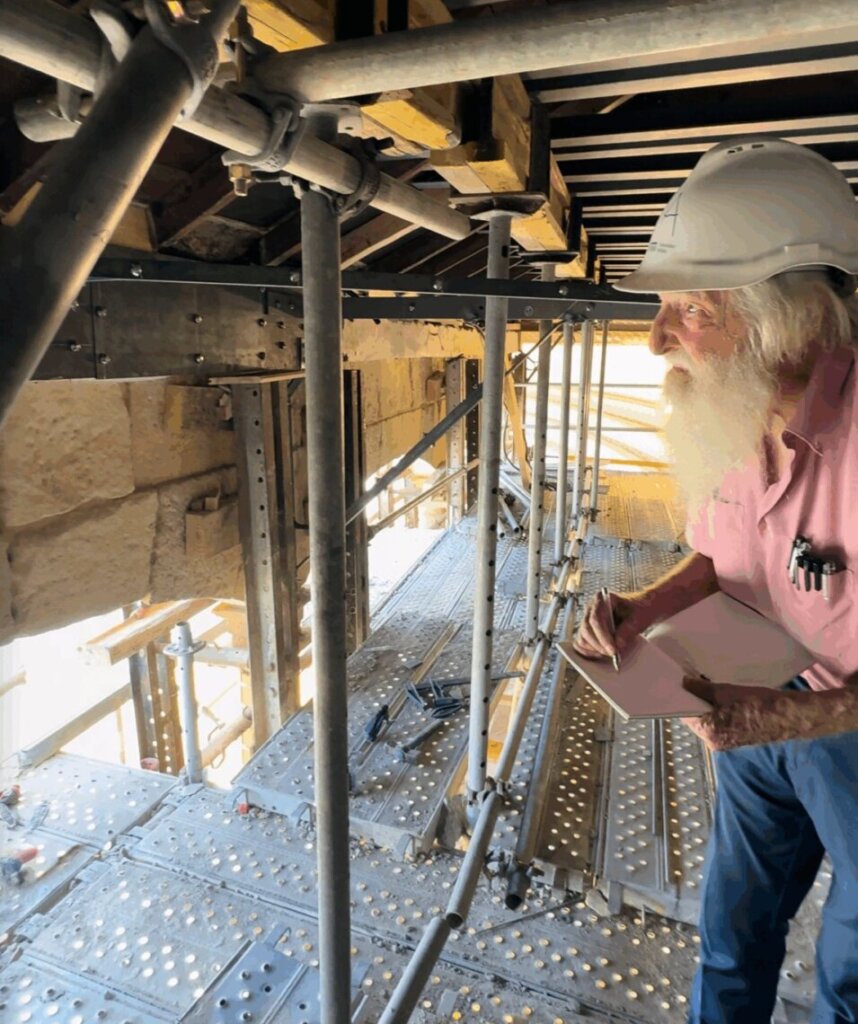 Las obras de consolidación estructural en la plaza de toros de Ronda continúan según lo previsto. Los últimos trabajos se centran en la instalación de una estructura romboidal que refuerza el tendido alto mediante un anillo de acero macizo. Cada sección, diseñada e instalada de forma individualizada, se adapta a la geometría específica de cada columna y arco.