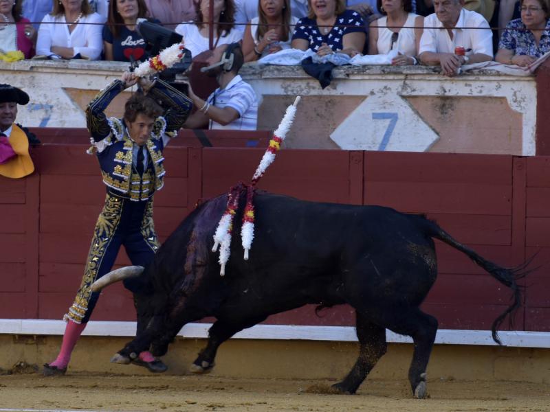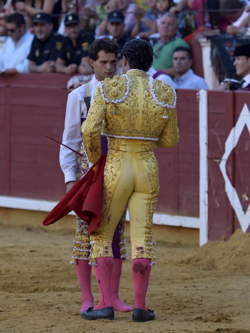No ayudó en demasía el primero, un animal bien hecho y serio pero que pronto se vino abajo y comenzó a defenderse. Escribano lo lidió con facultades y se hizo ovacionar especialmente en banderillas, tercio que cerró con el par de Calafia. Fue ovacionado. El cuarto sólo dejó a Escribano estar profesional y responsable. Volvió a destacar con los palos y con la espada recetó una efectiva estocada, lo único que pudo hacer frente a un toro deslucido e incómodo, que no le dio opción alguna de lucimiento. Ovación. El sevillano decidió regalar el sobrero. Fue de José Vázquez, un toro serio y bajo que aunque se vino pronto abajo permitió a Escribano resarcirse. Hubo variedad y entrega en todos los tercios, un final de recursos, y tras la estocada las dos orejas y la salida en triunfo junto a sus compañeros.