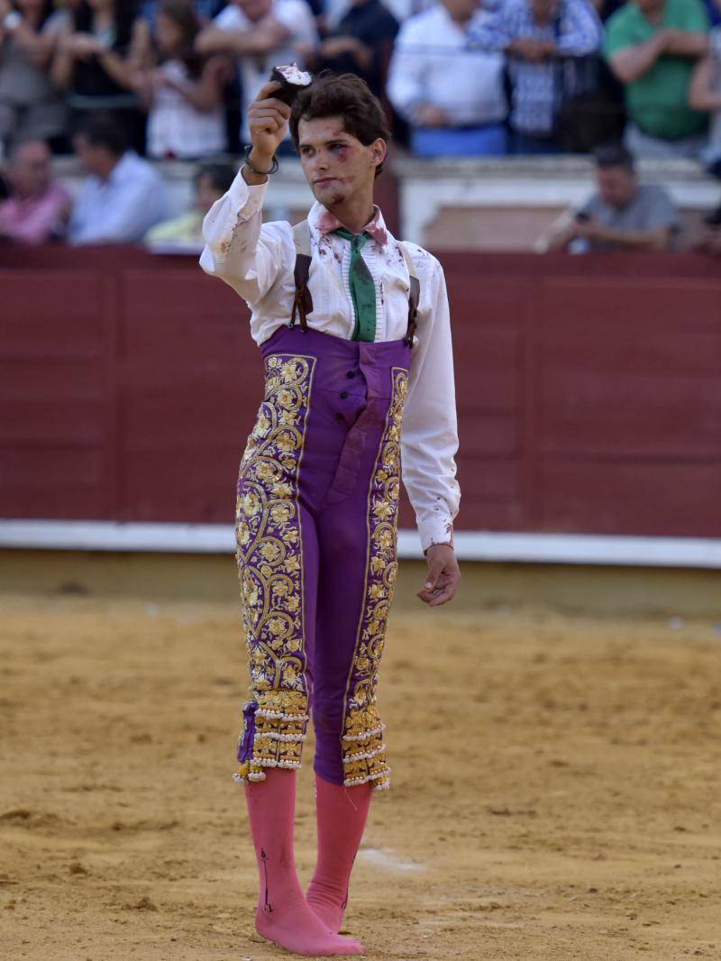 El primer novillo dio una paliza monumental a Aitor Darío "El Gallo" de salida. Maltrecho y dolorido salió el joven torero de la tierra a continuar la lidia de un animal complejo, que nunca le puso las cosas fáciles. Encorajinado, tirando de amor propio, el conquense consiguió con la zurda que el tendido se metiera en la faena y a pesar de fallar a espadas su gran esfuerzo fue premiado con una oreja. El sexto fue un novillo de José Vázquez que salió suelto y desentendido y convirtió su lidia en un caos. Fue arrollado de nuevo El Gallo y volteado el banderillero Ismael Pastor. Sacó pies el animal en el último tercio y de nuevo tiro de raza el novillero, con la que suplió sus lógicas carencias. Su actitud la canjeó de nuevo por otra oreja.