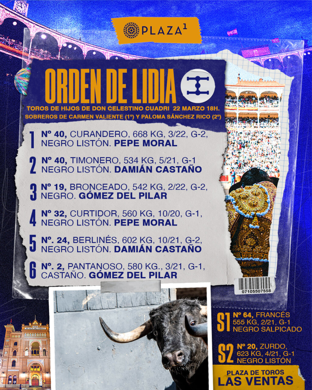 Seis toros de Cuadri aguardan ya en los chiqueros de la plaza de toros de Las Ventas para la cita que abre la temporada en el coso madrileño con una gran expectación. Esta tarde a las 18h. harán el paseíllo los toreros Pepe Moral, Damián Castaño y Gómez del Pilar. Este es el orden de lidia: