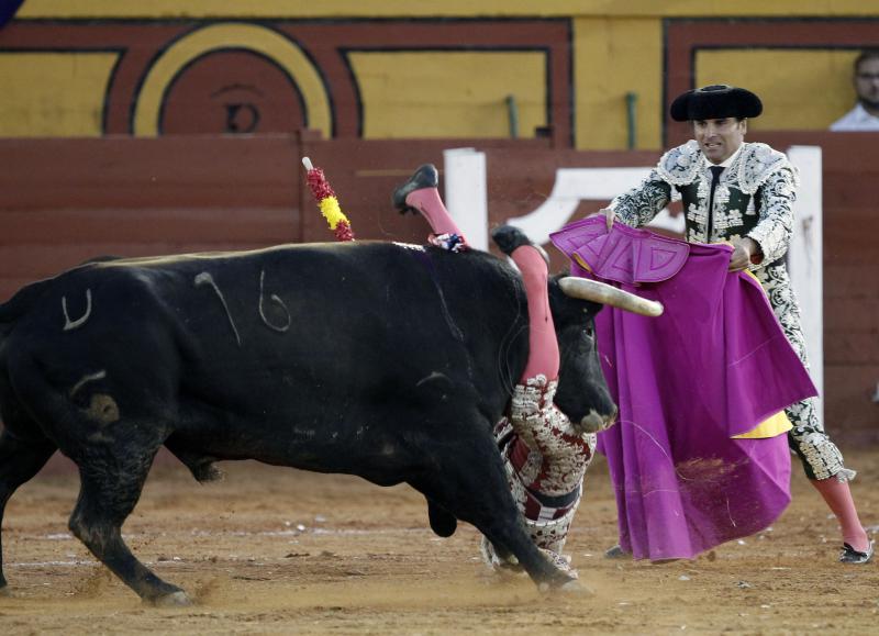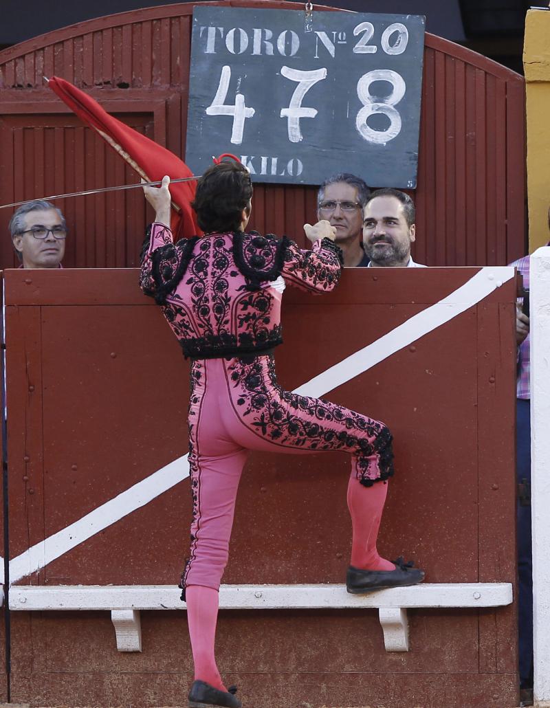 Tras salir el primero de la tarde, de Albarreal, se rompió el pitón izquierdo y fue devuelto. Salió el sobrero del mismo hierro. así, el primero bis fue un toro sin recorrido que arrastró los cuartos traseros. Destacó una verónica de Morante. Trasteo brevísimo por la cara con el toro parado. Dos pinchazos y media. Silencio.