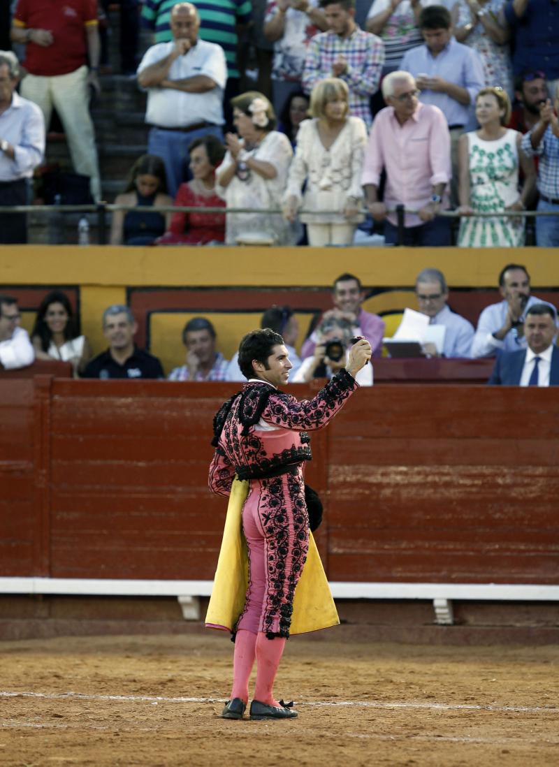El cuarto fue noble aunque acabó rajado. Morante lo recibió con cuatro faroles y tres verónicas inmensas. Faena de torería con derechazos buenos, naturales largos y siempre el buen gusto. Pinchazo, estocada corta y dos descabellos. Saludos tras aviso.