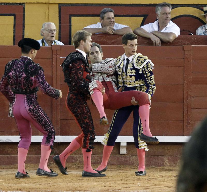 En el sexto, resultó cogido el banderillero Miguel Ángel Sánchez tras el primer par. En la muleta, llegó una gran faena de Galván en el sexto, con poder y elegancia. Cumbre una tanda de naturales. Resultó arrollado pero se sobrepuso y siguió con circulares emotivos. Estocada. Dos orejas y a hombros por la puerta de la Feria.
