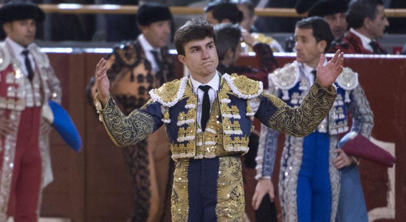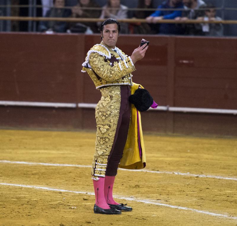 David Mora volvió a triunfar en Vistalegre. Abrió la puerta grande, la misma que el año pasado el día de su emotiva reaparición. El madrileño paseó una oreja de cada toro y realizó lo más destacado del festejo. El primero fue un buen toro, ovacionado en el arrastre. Tuvo calidad y transmisión. Bravo el toro, pero no fácil, y David Mora supo imponerse. Lo dejó el torero crudo en el caballo. Hubo disposición en un quite por chicuelinas. La faena tuvo una primera parte muy intensa por el pitón derecho toreando en redondo y llegando al público; después un núcleo central de ligazón y al final, remontó de nuevo el vuelo con una tanda por el izquierdo y una serie emotiva sobre la diestra. Una estocada y oreja.