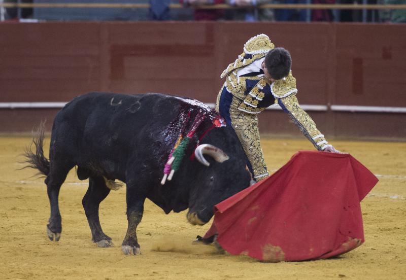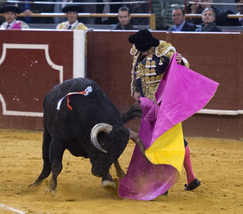 El segundo fue devuelto, siendo sustituido por un sobrero del mismo hierro, que fue un toro con calidad y ritmo. Un animal con clase y fijeza al que Paco Ureña toreó con reposo y pulcritud, sobresaliendo el asiento de las tandas sobre la mano derecha que fue por donde la faena tuvo más cuerpo. Brilló la estética y el clasicismo del murciano que paseó una oreja tras una estocada.
