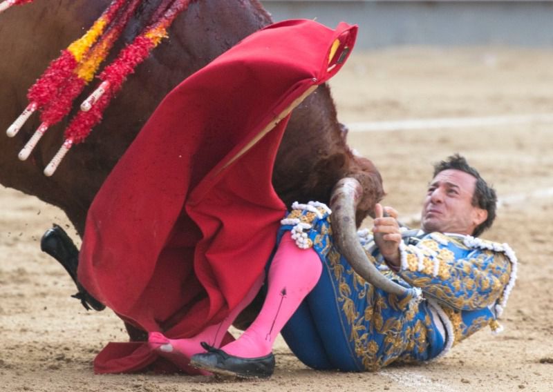 Complicado y peligroso fue el lote de Miura que correspondió a Rafaelillo. El murciano hubo de hacer un honrado esfuerzo a sabiendas de no haber posibilidad de recompensa. Su primero le cogió de fea manera al entrar a matar, estando en el suelo a merced del de Miura durante unos dramáticos e interminables segundos. Afortunadamente, todo quedó en la paliza y en un fuerte varetazo en el cuello y en la cara.