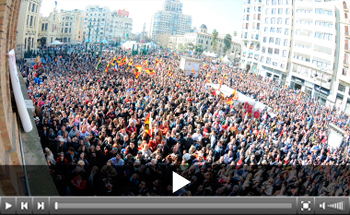 Poco antes de las 16:00 horas llegaba la cabecera de la manifestación a la plaza de toros. Desde un balcón de la naya de la misma, Enrique Ponce, al lado de otro torero valenciano ilustre, El Soro, leyó el manifiesto. Antes, aseguró: "Es un día histórico para la Fiesta y para el toreo. El pueblo toma las calles para reivindicar al toro, al toreo como un bien propio de su forma de vivir, de su cultura. Una cultura que nuestra constitución ampara. Somos fuertes y muchos, y responsables. Lo hemos demostrado aquí y lo estamos continuamente haciendo en las plazas y en las calles por las que corren. Somos ejemplo de civismo, y estamos orgullos de ser aficionados a los toros. Somos españoles con derechos a nuestra identidad y nuestra cultura. Hagan el favor de no utilizarnos como materia de distracción". Emotivo discurso entre gritos de ¡libertad, libertad!