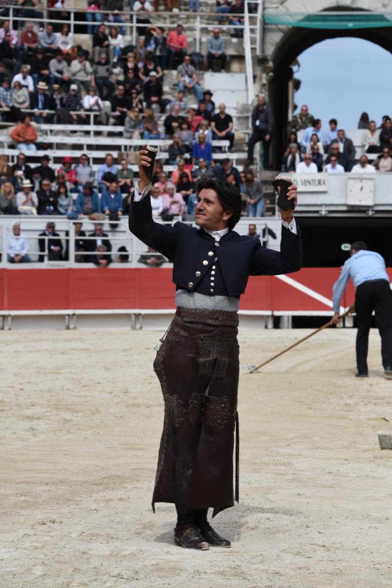Dos orejas le cortó Ventura al quinto, un toro bien presentado, noble aunque algo tardo. Clavó dos rejones de castigo, galopando bien a dos pistas y adornándose con la grupa del caballo. Realizó dos grandes quiebros con Ritz, gustando también a lomos de Remate en tres cortas, dos rosas al violín y el adorno del teléfono. Mató de rejón entero trasero. Fue la labor más rematada de la matinal.