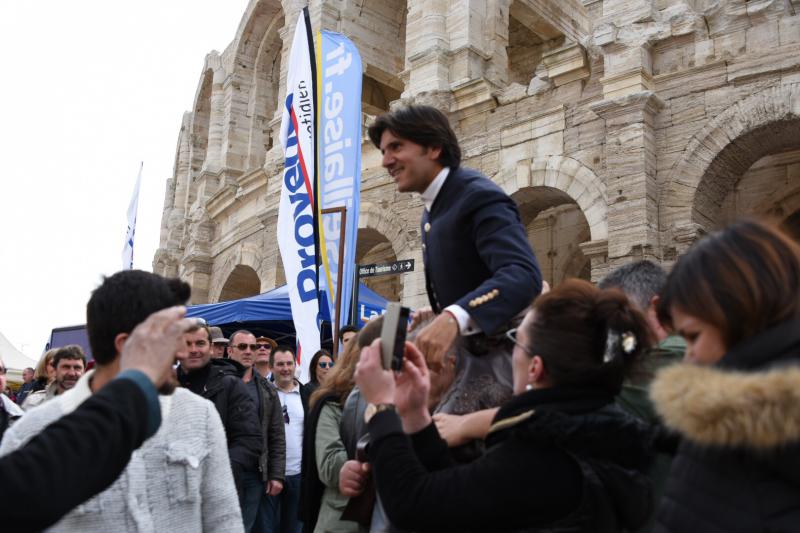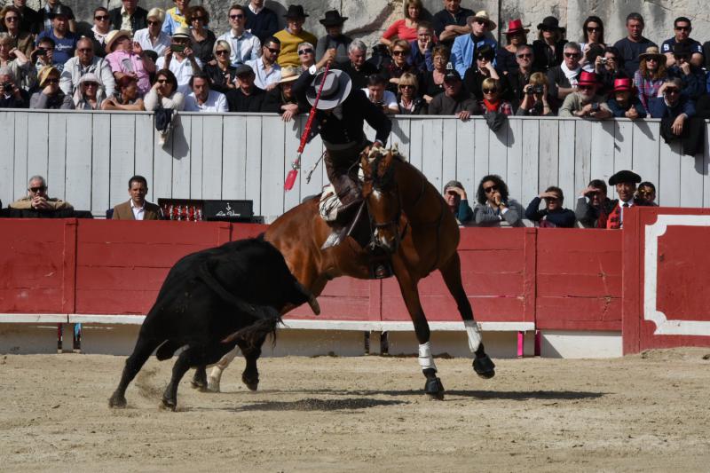 Arles (Francia), lunes 28 de marzo de 2016. Feria de Pascua. Festejo matinal de rejones. Toros de Fermín Bohórquez, bien presentados, nobles aunque flojos y poco colaboradores, para Andy Cartagena, silencio en ambos; Diego Ventura, ovación con saludos y dos orejas; y Lea Vicens, ovación con saludos y oreja. Entrada: Casi tres cuartos. La corrida arrancó con doce minutos de retraso, no dándose ninguna explicación del motivo del mismo.