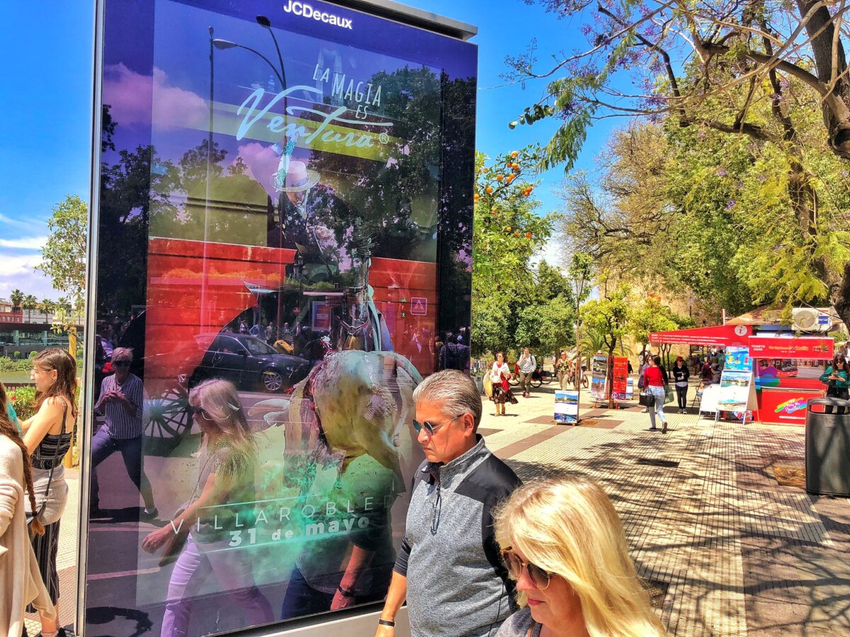 Como ya hiciera con sus corridas en las ferias de Fallas de Valencia y de la Magdalena de Castellón, Diego Ventura promociona estos días en Sevilla sus compromisos del mes de mayo en Jerez de la Frontera, Valladolid, Córdoba y Villarrobledo. Lo hace en nueve mupies digitales ubicados en el Paseo Colón de la capital hispalense, sin duda, uno de los ejes vertebradores más importantes de la actividad social de la ciudad siempre, pero, especialmente, durante estos días de Feria de Abril.