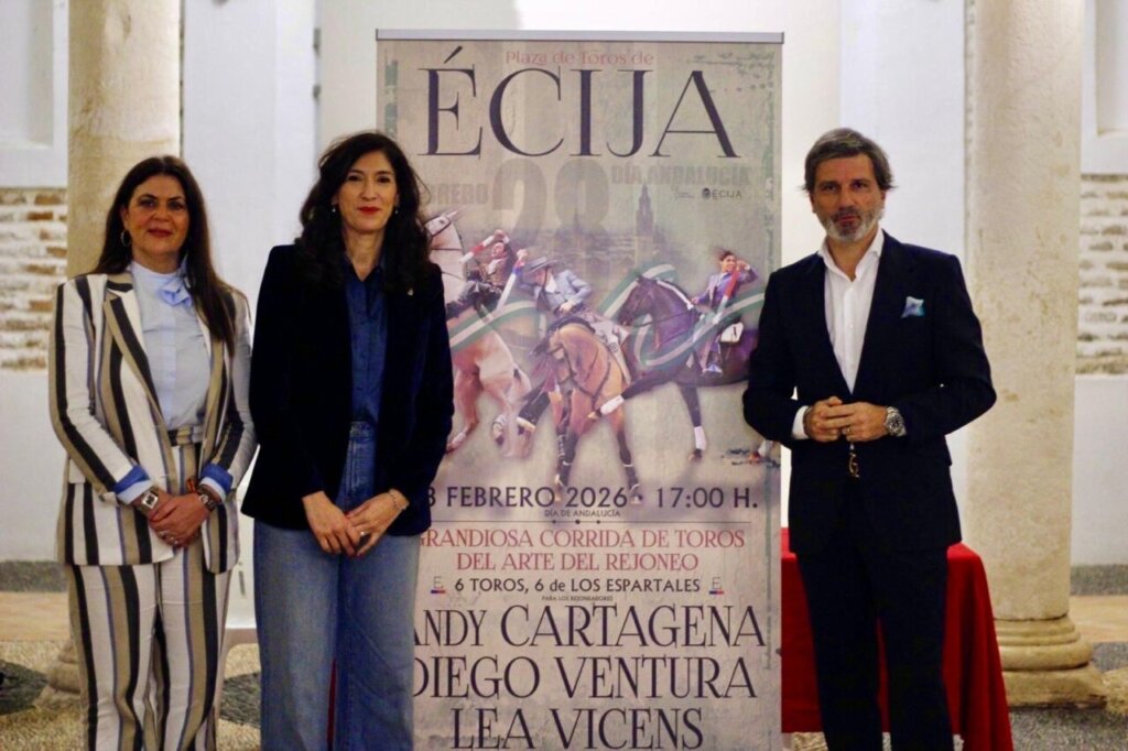 En las caballerizas del Palacio de Benamejí, con la presencia de la alcaldesa Silvia Heredia, la concejala de Festejos, Raquel Miranda, y el empresario Jorge Buendía, se ha presentado en la mañana de este martes el cartel de la corrida de rejones del próximo 28 de febrero en la plaza de toros de Écija.
