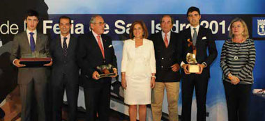 El Ayuntamiento de Madrid entregó este jueves los galardones a los triunfadores de la Feria de San Isidro 2014 en un acto celebrado en el Pabellón de los Jardines de Cecilio Rodríguez, en El Retiro, y que contó con la presencia de la alcaldesa de Madrid, Ana Botella. "Madrid es una ciudad taurina con mayúsculas, una ciudad donde la fiesta de los toros tiene desde septiembre de 2012 reconocida su condición de Patrimonio Inmaterial del pueblo de Madrid", afirmó.
