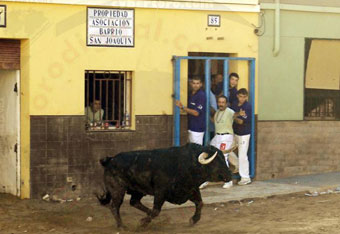 La tarde del miércoles estuvo marcada por la canícula que hizo mella sobre los astados exhibidos en la calles San Joaquin de Vilavella. El primer toro de la jornada pertenecía a la ganadería de Los Chospes que realizó una rápida salida acudiendo a todos los quites en sus primeros lances bajando posteriormente a la parte baja del recinto y recorriendo todo el recinto bajo un sofocante calor.
