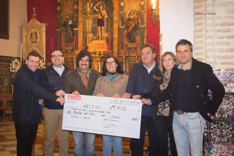 Morante de la Puebla y el empresario Jorge Buendía entregaron este jueves en un sencillo acto en la Iglesia Parroquial de Nuestra Señora de la Granada a Cáritas Parroquial de La Puebla del Río los beneficios obtenidos en el festival taurino celebrado el pasado 24 de octubre en la localidad sevillana. El talón entregado asciende a 14.402 euros.