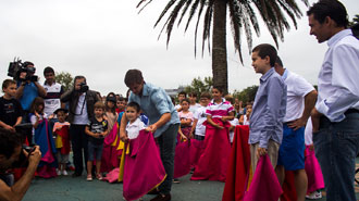 Decenas de niños se han acercado hasta los Jardines de Piquío, donde los tres toreros les han enseñado las distintas suertes del toreo, así como el manejo de los trastos de torear. El acto, conducido por David Casas e Isabel Virumbrales, comenzó con un minuto de silencio en memoria de las víctimas del accidente ferroviario de Santiago de Compostela.