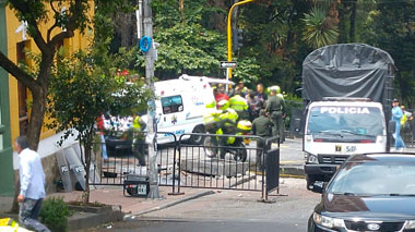 Un atentado con bomba en el centro de Bogotá, muy cerca de la plaza de toros Santamaría, causó este domingo una treintena de heridos. Las primeras informaciones aseguraron el fallecimiento de uno de los 1.200 policías destinados a reforzar la seguridad de los asistentes a las corridas de toros de la Feria de la Libertad, desplegados debido a las acciones violentas llevadas a cabo por los antitaurinos en las últimas semanas. Sin embargo, finalmente, el presidente de la República de Colombia, Juan Manuel Santos, ha desmentido este lunes que hubiera una víctima mortal. Por el momento se desconoce la autoría y el objetivo del atentado.