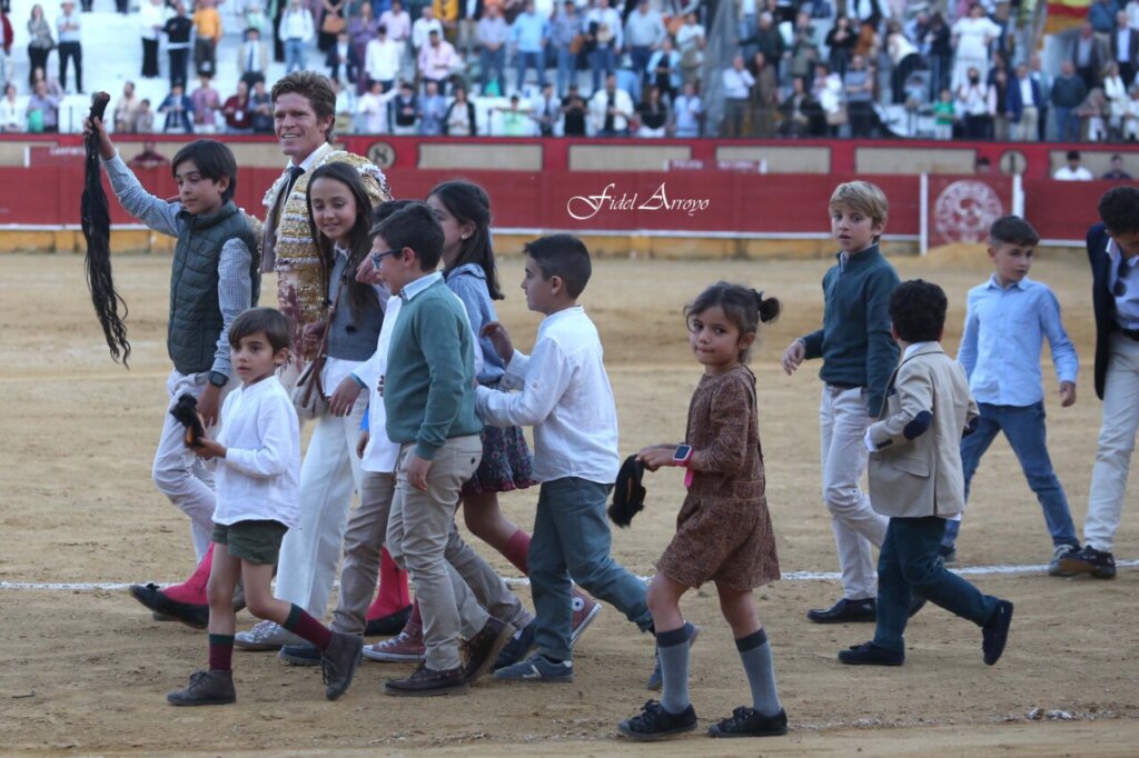 Soberbia actuación de Borja Jiménez en Cabra con el sexto, Jicarón, nº 30, un toro muy templado y de excelente condición. Lo muleteó muy a gusto Borja pulseándolo al ralentí, después de haberlo recibido con una larga en el tercio y comenzar la faena también después de hacerlo de hinojos. Se gustó y gustó el sevillano, poniendo varias veces los tendidos en pie después de unos redondos excelentes y al ralentí. Contundente estocada siendo premiado con dos orejas y rabo, y el toro con la vuelta al ruedo.