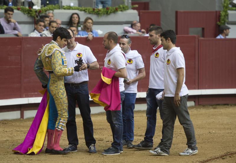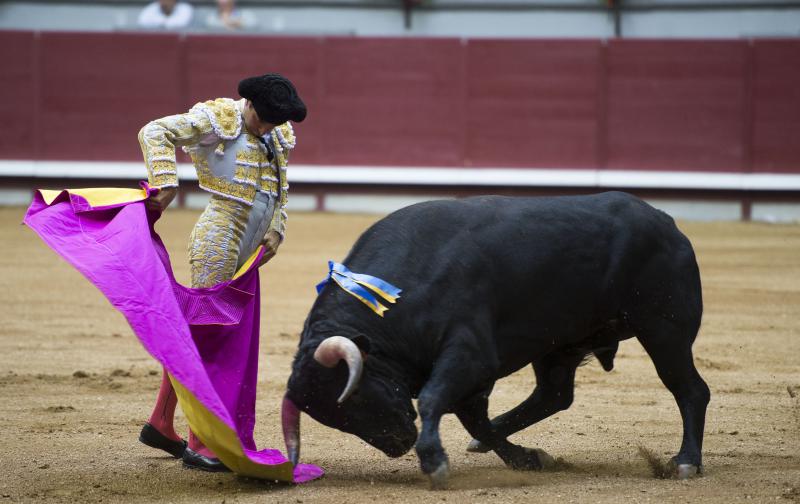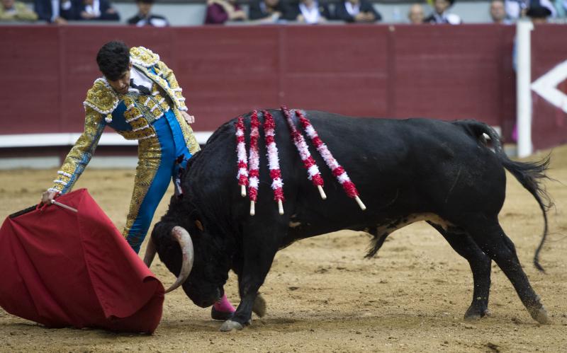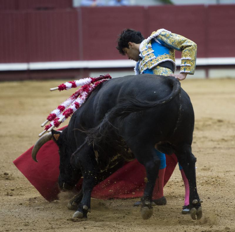 El tercero fue un buen toro por su recorrido, fijeza, ritmo y un buen pitón derecho. Más corto se quedaba por el izquierdo pero siempre con nobleza. López Simón se entregó en una faena de mucha intensidad iniciada de rodillas en los medios, ligando muletazos en un palmo de terreno. Cosido todo bien, López Simón puso vibración en una faena que llegó al público. Tras una estocada, se atascó el descabello y perdió lo que llevaba marchamo de triunfo. Cerró plaza un toro manejable y noble, sobre todo por el pitón izquierdo, con más recorrido. El madrileño, por ese lado, logró un par de series estimables, toreando despacio y largo pero el toro estaba muy justo de raza. Un estocada tendida y un golpe de descabello dejó todo en silencio.