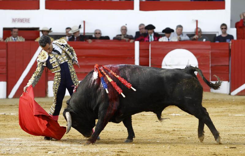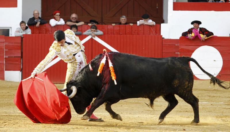 Una oreja cortó Iván Fandiño de su primero, un toro de fuerzas limitadas que rebañaba al final de cada pase y que despachó de una estocada trasera. Esfuerzo sin recompensa en el quinto para el de Orduña, que le tocó el peor del encierro, un animal sin celo que perdió las manos en repetidas ocasiones, silenciándose su labor tras matar al tercer intento.