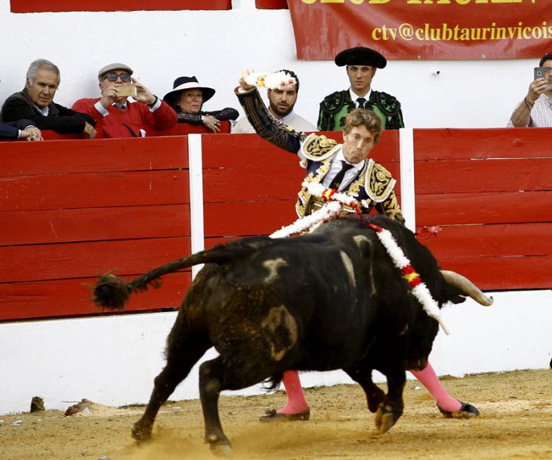 Al mejor toro, el cuarto, un animal noble, justo de fuerza y al que entendió a la perfección, Manuel Escribano cortó las dos orejas. Excelente ejemplar de Camino de Santiago premiado con una vuelta póstuma tras una labor templada sobre las ods manos, destacando sus series de naturales antes de terminar en terrenos de cercanías y matar de una estocada caída. No tuvo ninguna opción con su primero, noblón pero soso, tardo y rápidamente apagado.