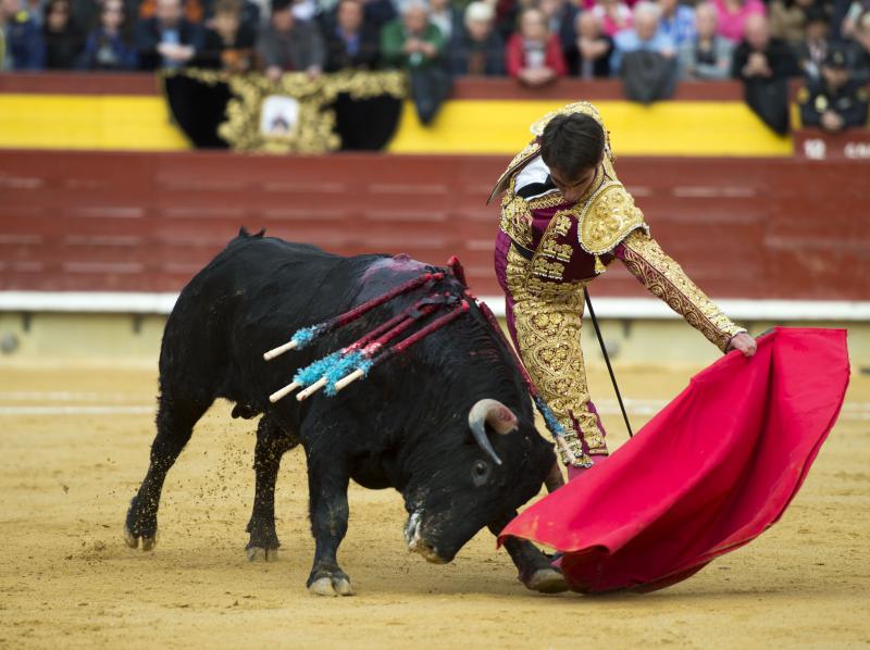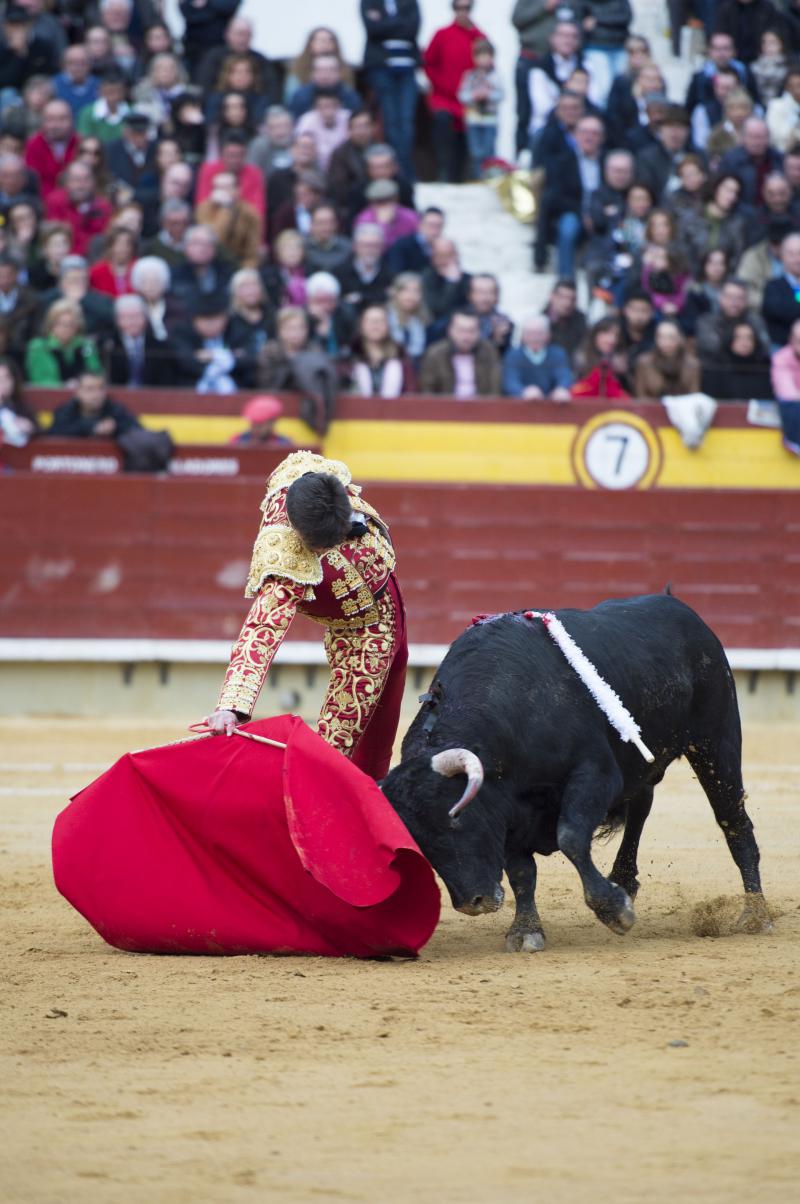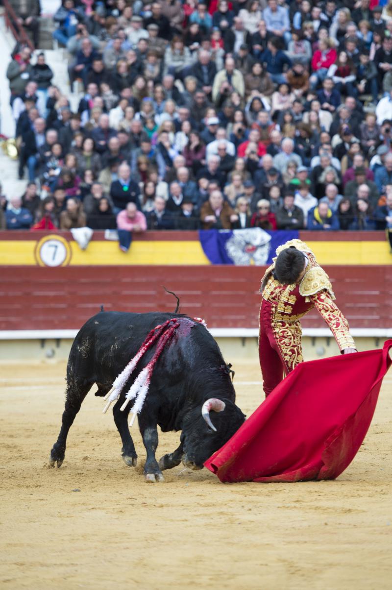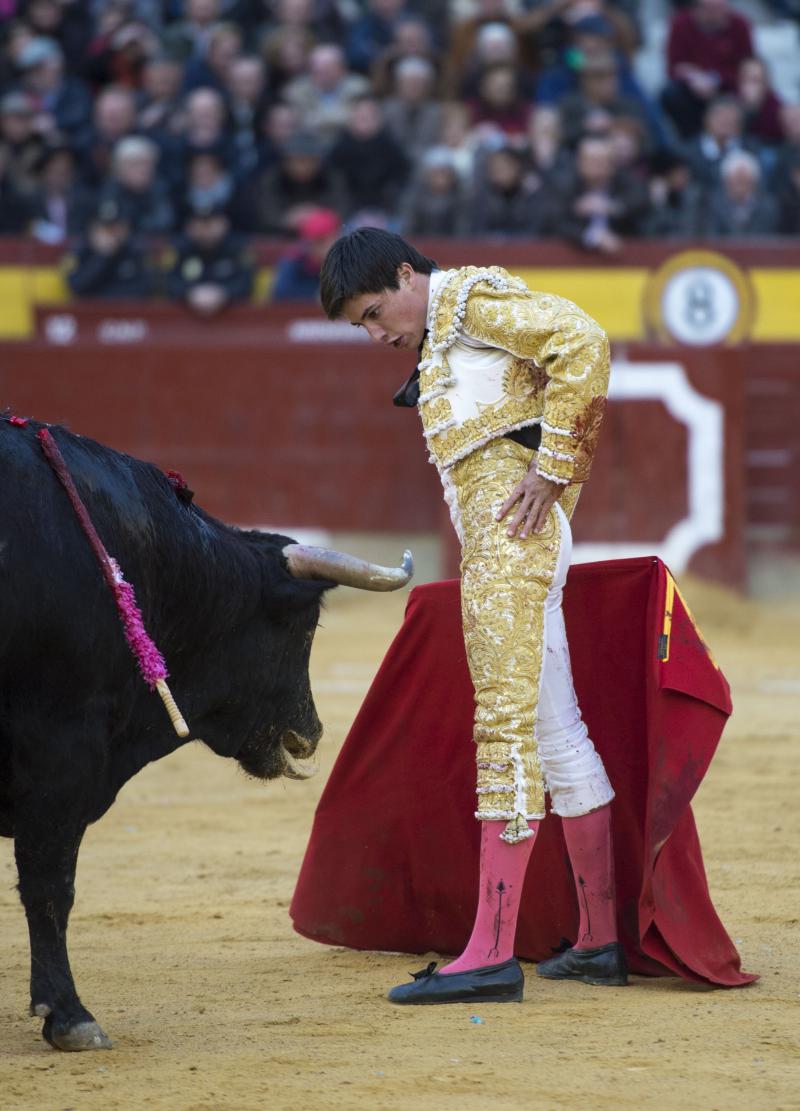 La faena de Varea al tercero de la tarde tuvo sello de torero grande. Muy importante. Su profundidad, elegancia y personalidad enamoraron al público de Castellón desde que se abrió de capa, con un saludo que tuvo sabor y mucha torería, intercalando el toreo a la verónica genuflexo con airosas chicuelinas y una media de auténtico cartel de toros. Se desmonteraron en banderillas Montoliu y Diego Valladar. Parecía el novillo que tenía las fuerzas justas, pero supo Varea tomarle el pulso muy bien y el fuenteymbro se vino arriba, embistió por abajo y nunca más se cayó. Midió muy bien los tiempos y las distancias el de Almassora y acabó toreando con mucha naturalidad, con esa distinción al alcance de muy pocos. Excelso el toreo al natural, sentido y encajado. Hubo variedad en los remates, la trincherilla, los cambiados… todo repleto de torería. Mató de una estocada arriba y le dieron las dos orejas. Se le pidió el rabo.