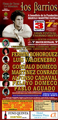 El cartel está compuesto por los rejoneadores Fermín Bohórquez y Luis Valdenebro y los novilleros Gonzalo Domecq, Martínez Conradi, Alfonso Cadaval, Pelayo Domecq y Pablo Aguado ante reses donadas de las ganaderías de Fermín Bohórquez, Jódar y Ruchena, Juan Pedro Domecq, Martelilla, La Quinta, El Torero, Santiago Domecq y Carlos Núñez