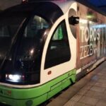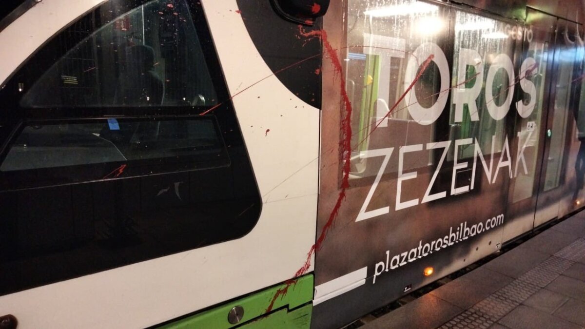 El tranvía de Bilbao que anuncia las Corridas Generales sufre el vandalismo de los censores