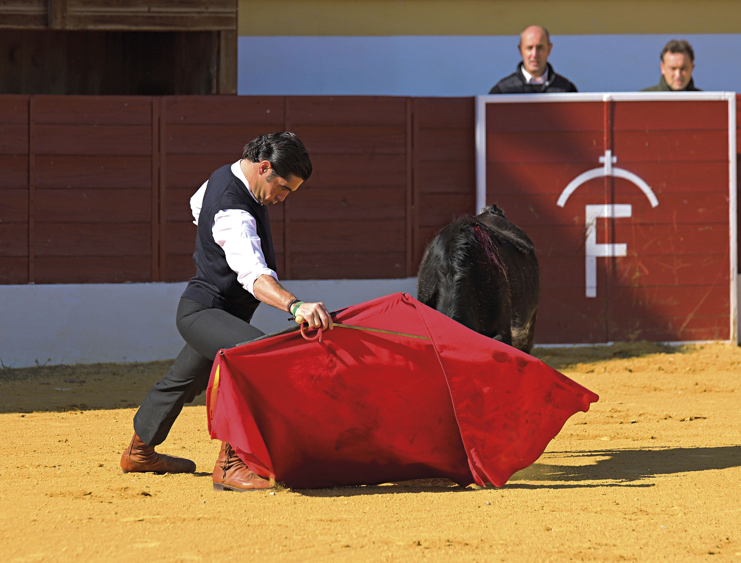 Ángel Teruel tentando en la ganadería de El Ventorrillo