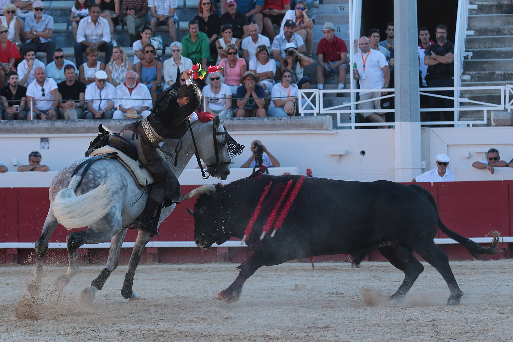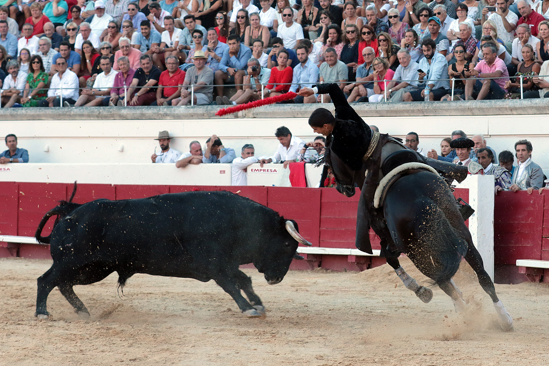 Beziers (Francia), martes 14 de agosto de 2018. Pablo Hermoso de Mendoza y Lea Vicens, mano a mano