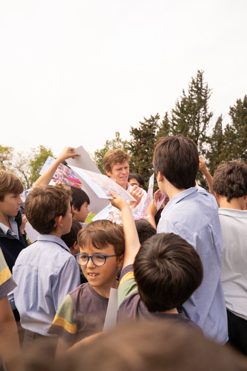 Borja Jiménez con los colegios en Sevilla