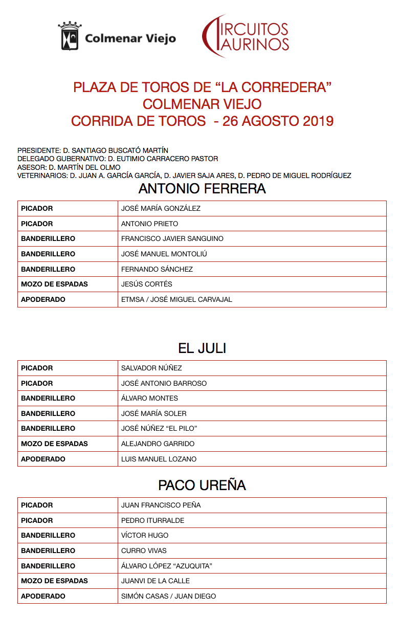 Colmenar Viejo, lunes 26 de agosto de 2019. Sorteo de los toros de Parladé y Juan Pedro Domecq
