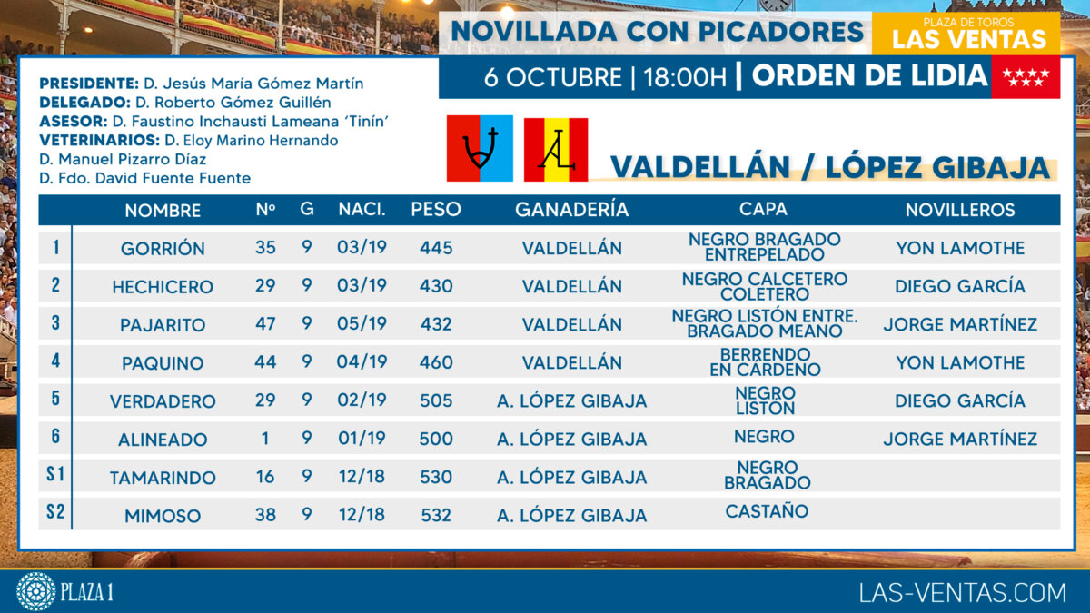 Cuatro de Valdellán y dos de López Gibaja para esta tarde en Madrid